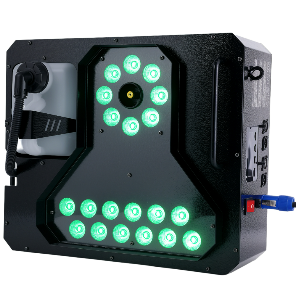 З потужністю 3000 Вт та баком на 2.5 літри SM029 забезпечує впевнене нагрівання за 5 хвилин та стабільний викид диму на висоту до 10 метрів з . Підсвічування з 20 світлодіодів (3 Вт кожен) розфарбовує дим у насичені відтінки, а режими стробу, плавних переливів та різкої зміни кольорів додають динаміки.