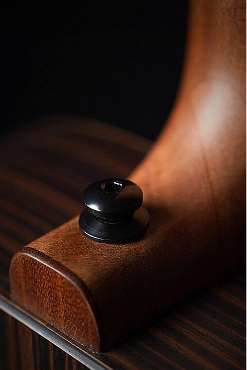 Спинка та обичайки виготовлені з HPL з текстурою палісандра — матеріалу, стійкого до вологи, подряпин і температурних змін. Така конструкція робить гітару надійним вибором для подорожей, вуличних виступів і активного використання.