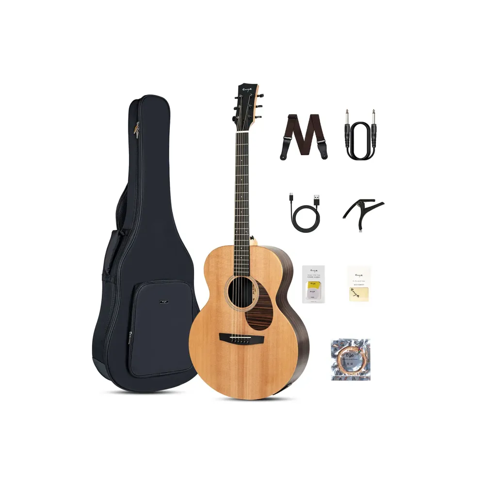 Enya EA-X1 Pro SP1 — це акустична гітара нового формату, створена для музикантів, яким важлива свобода звучання без зовнішнього обладнання. Інструмент поєднує натуральний тембр масиву ситської ялини з цифровою обробкою звуку, яка працює прямо з корпусу гітари.