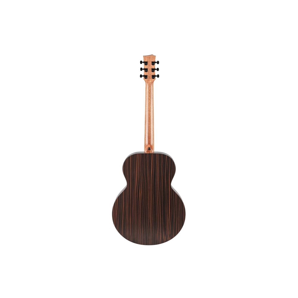 Спинка та обичайки виготовлені з HPL з текстурою палісандра — матеріалу, стійкого до вологи, подряпин і температурних змін. Така конструкція робить гітару надійним вибором для подорожей, вуличних виступів і активного використання.