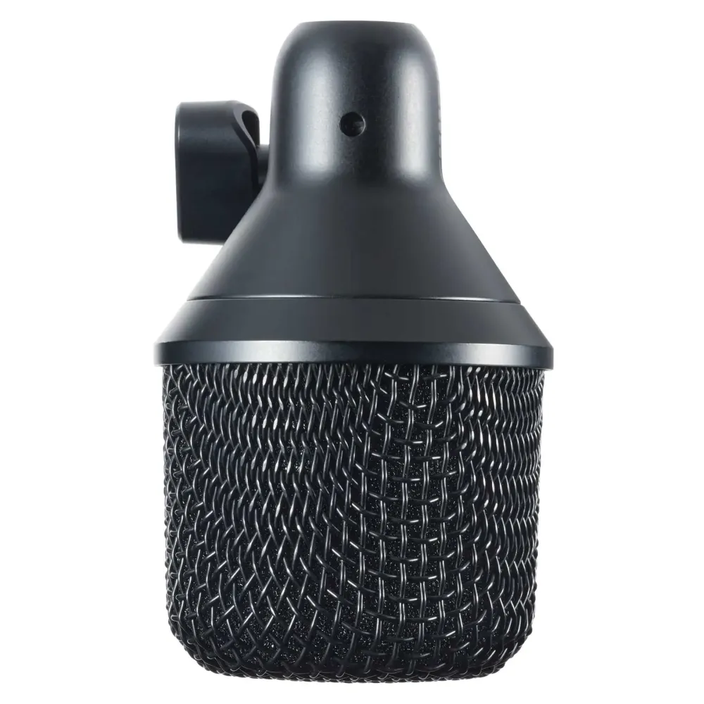 Суперкардиоидная направленность эффективно отсекает посторонние звуки и уменьшает «пролив» со сцены, что особенно важно при живых выступлениях. Компактный корпус облегчает установку внутри бас-бочки или рядом с источником звука.