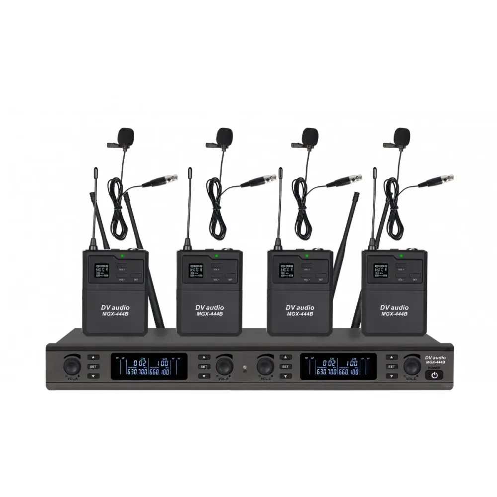 DV audio MGX-444B - це надійна 4-канальна UHF-радіосистема, розроблена для використання в караоке-закладах, конференц-залах, на невеликих сценах тощо