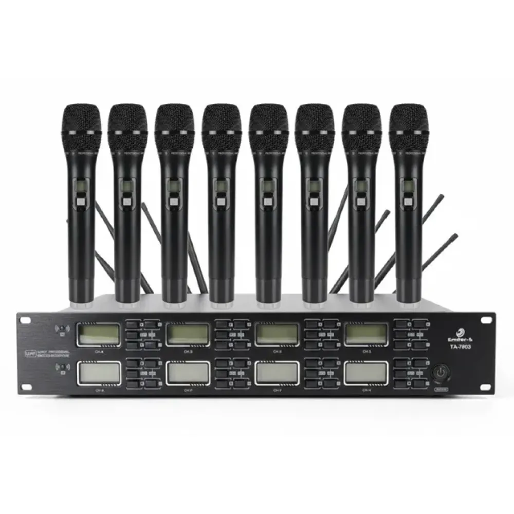 Emiter-S TA-7803H— професійна бездротова мікрофонна система UHF з 8 ручними мікрофонами. Призначена для конференцій, сценічних виступів, церков, навчальних закладів, концертних та прокатних систем.