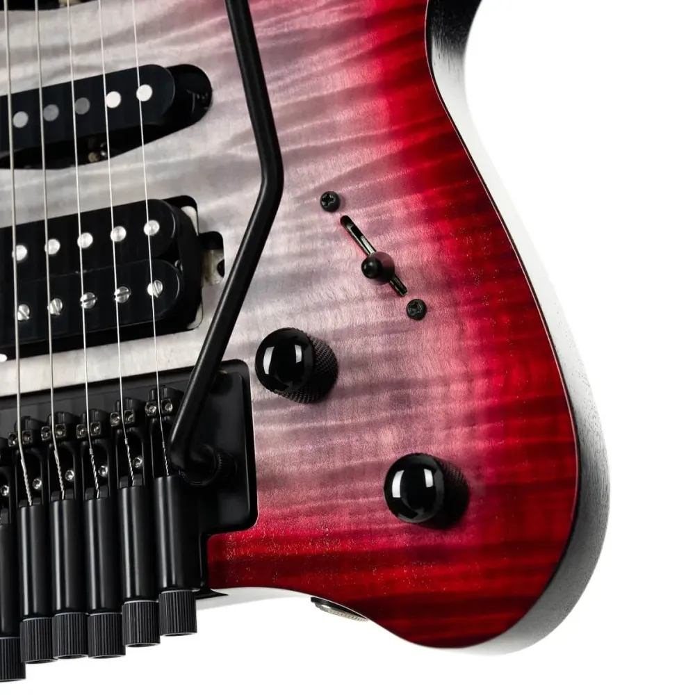 Высокоэффективная безголовая гитара, легкая, сбалансированная и быстрая, с универсальностью HSS и соответствующей кастомной тремоло-системой.