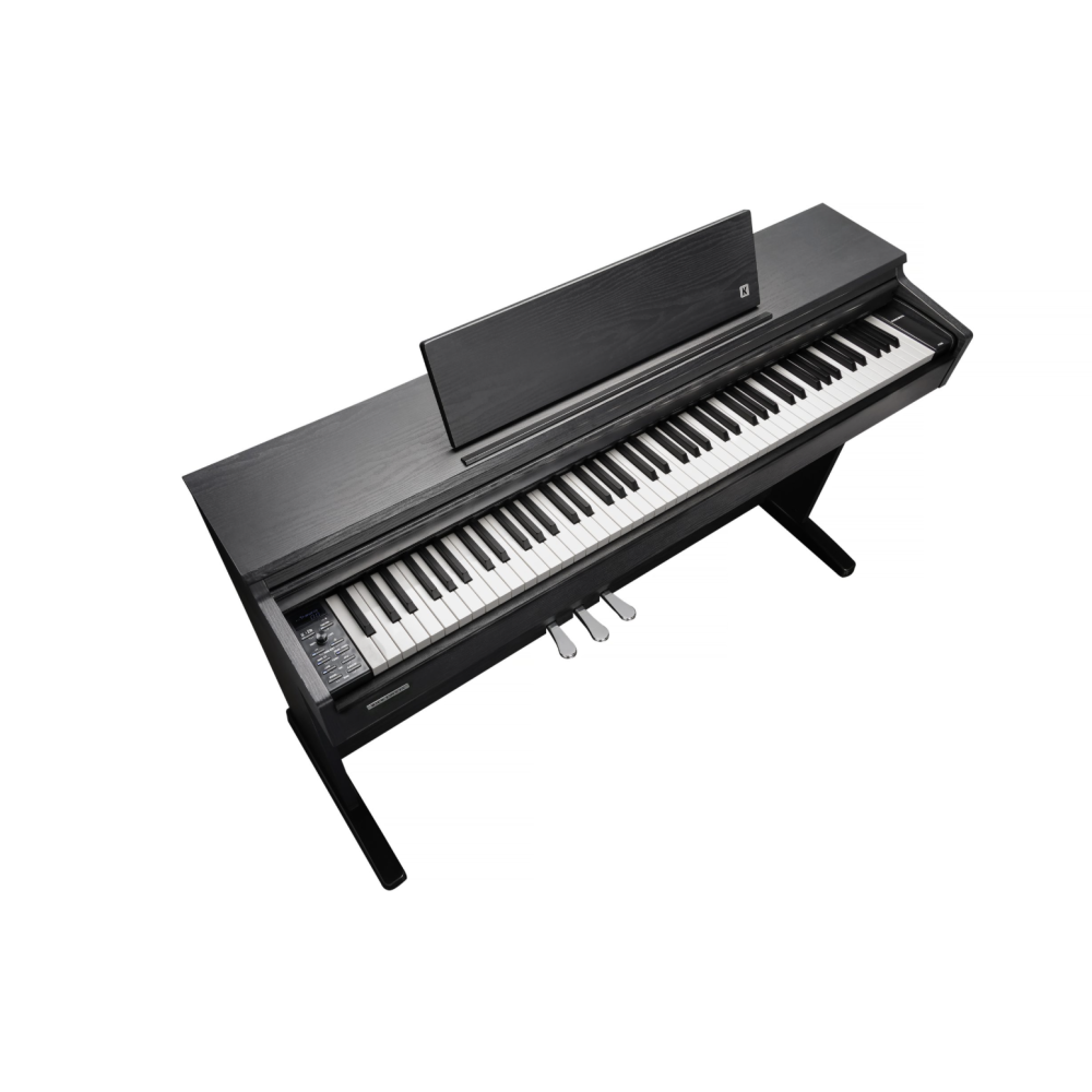 - Клавиатура: 88 клавиш с полной взвешенной молоточковой (hammer‑action) механикой — модель “H1 Ivory GT”. Белые клавиши с верхней частью цвета слоновой кости, чёрные — с текстурой, напоминающей дерево. Это даёт более естественное физическое ощущение, близкое к акустическому роялю.