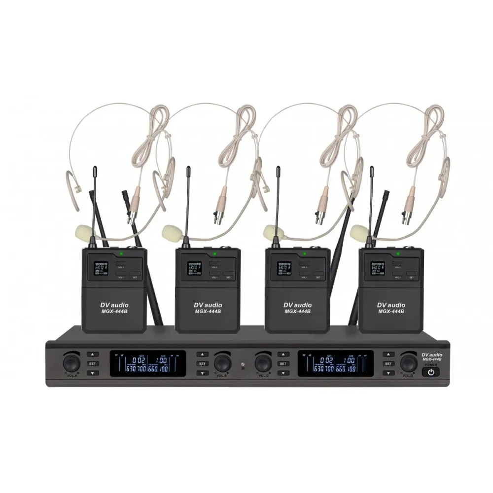 DV audio MGX-444B – это надежная 2-канальная UHF-радиосистема, разработанная для использования в караоке-заведениях, конференц-залах, на небольших сценах и т.д.