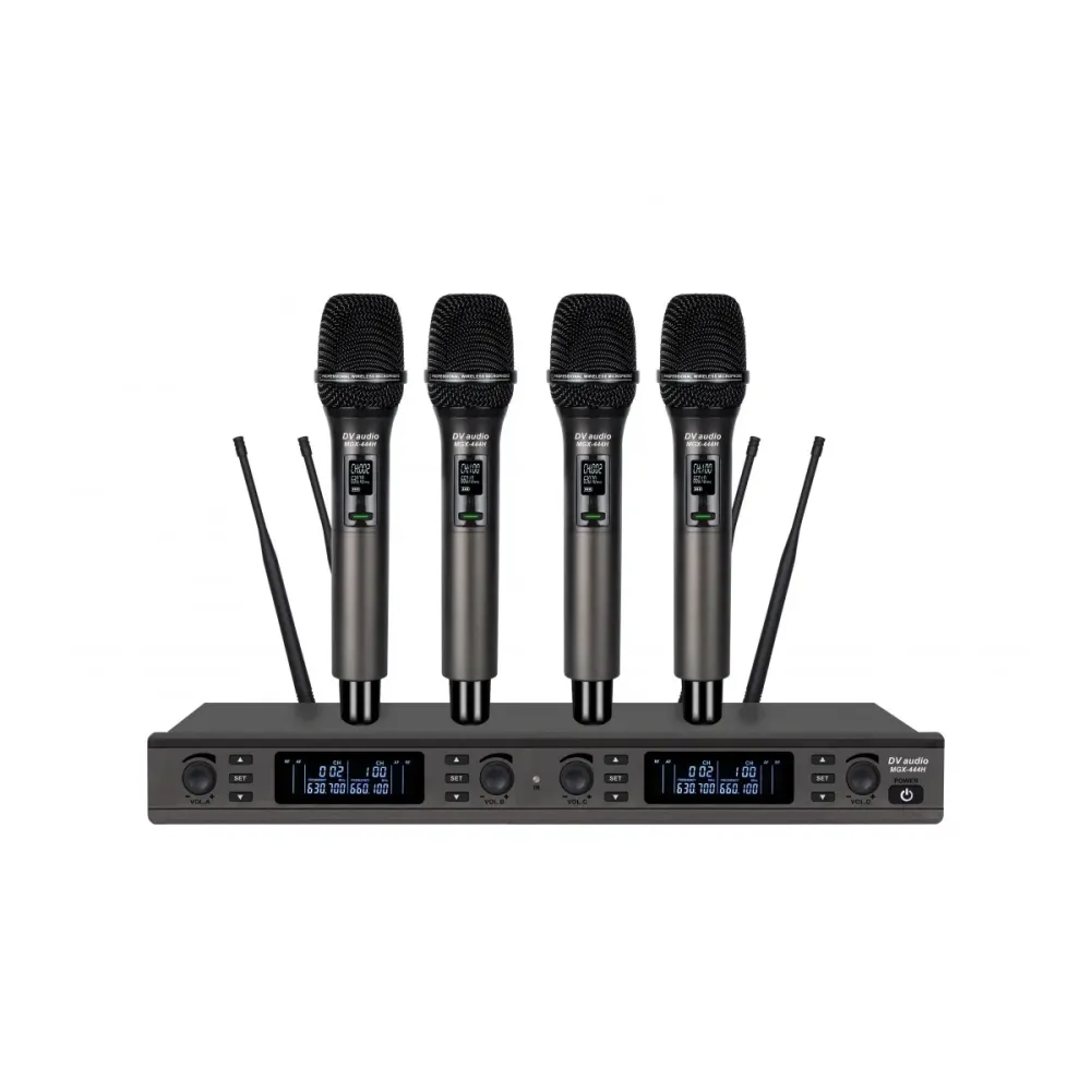 DV audio MGX-444B – это надежная 4-канальная UHF-радиосистема, разработанная для использования в караоке-заведениях, конференц-залах, на небольших сценах и т.п.