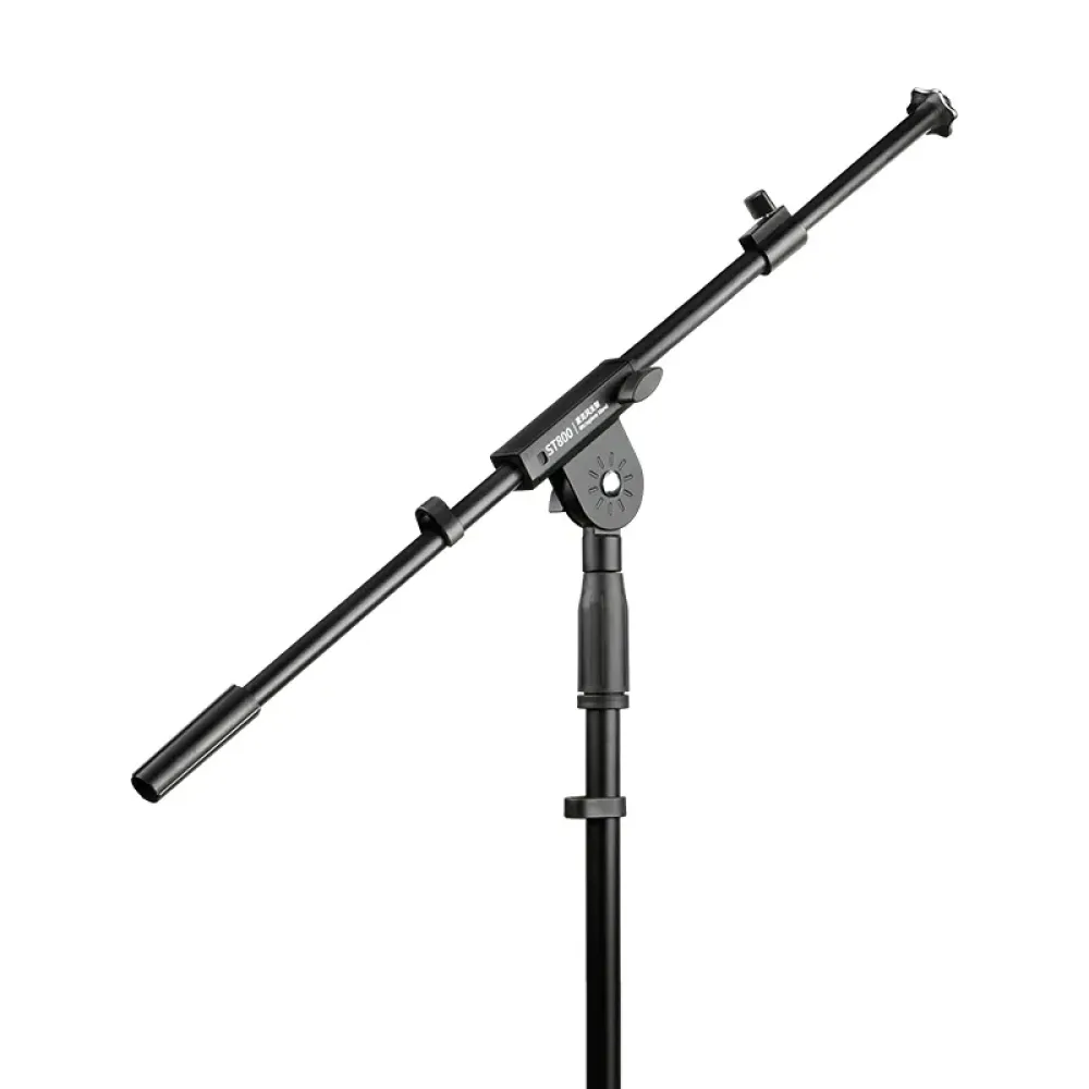 Takstar ST800 — это надежная напольная микрофонная стойка, созданная для тех, кому важна стабильность и широкий диапазон регулировок. Благодаря трехуровневой телескопической конструкции, она обеспечивает идеальное позиционирование микрофона как в профессиональной студии, так и на концертной площадке.