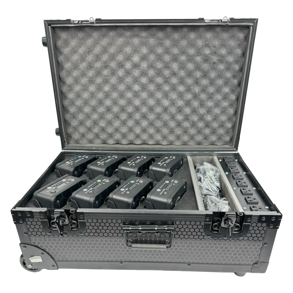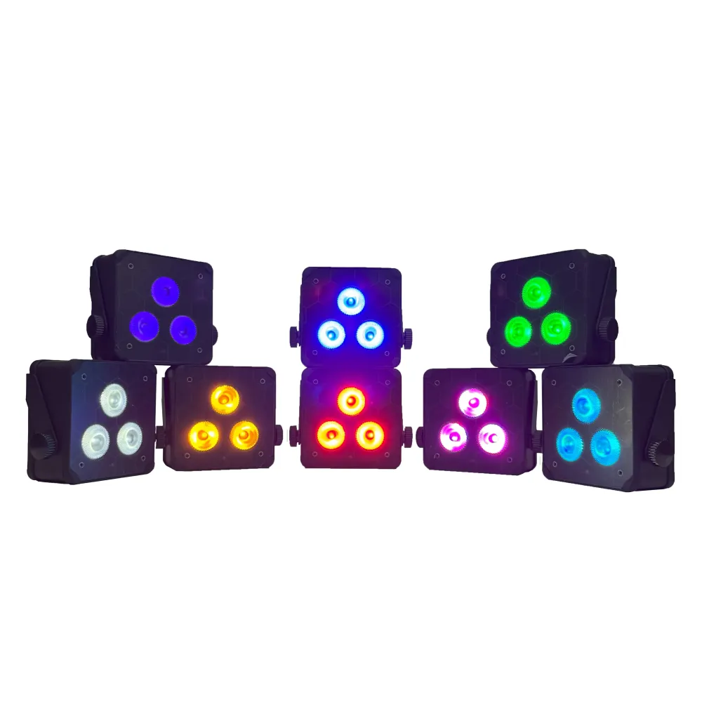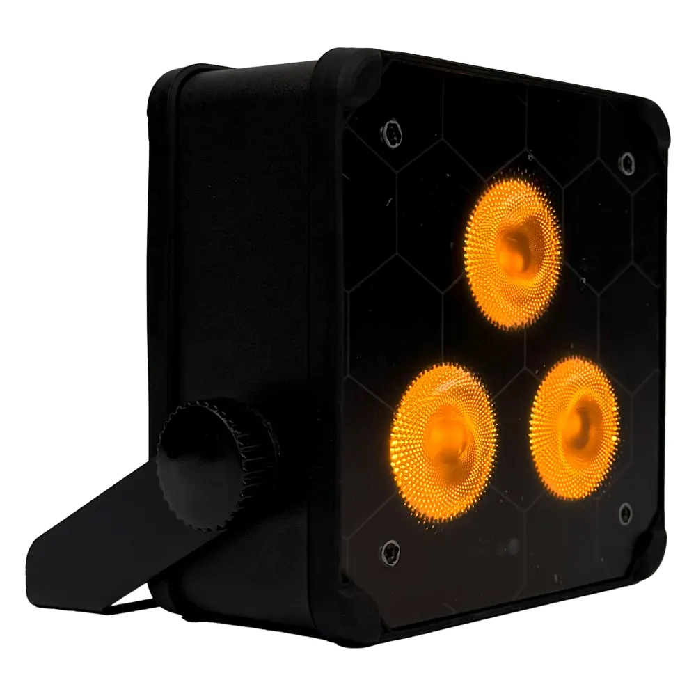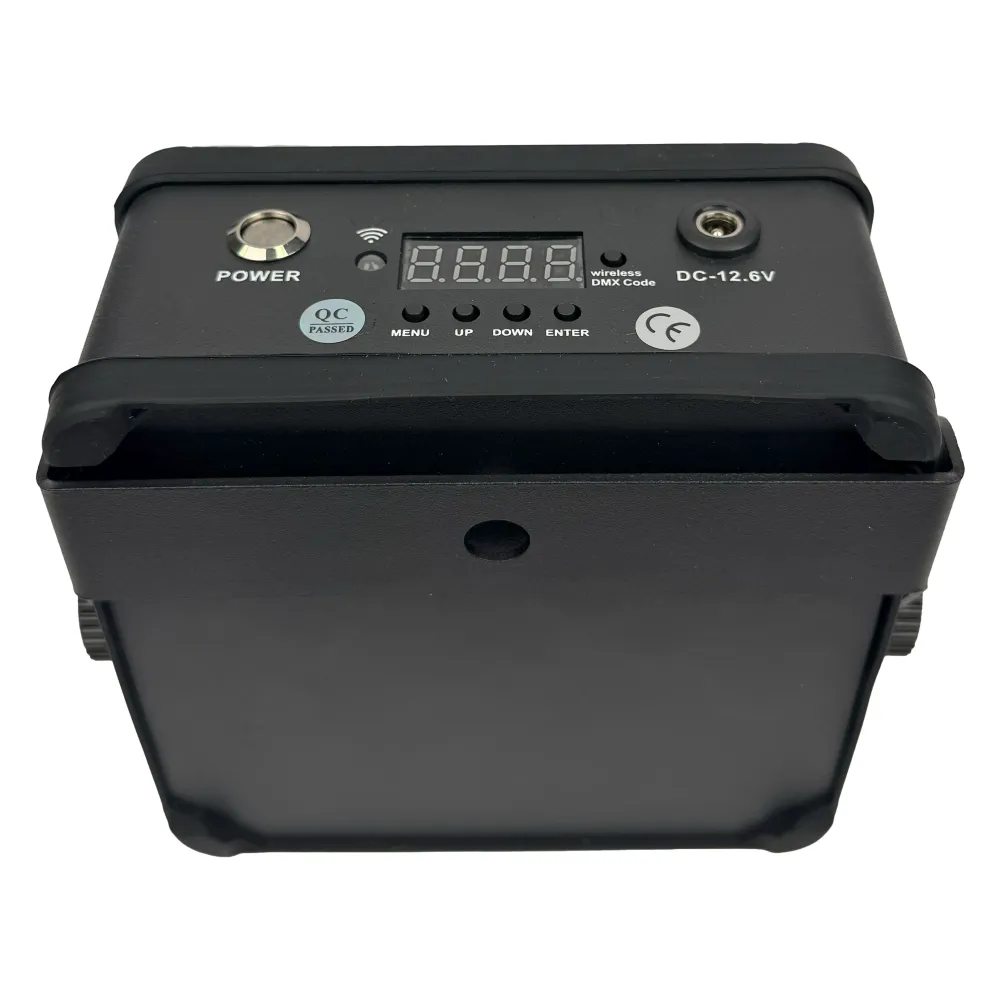 Мобильный прожектор фон подсветки с функцией зарядки. Проектор оснащен 3 светодиодами мощностью 18 Вт (6-1-1 RGBWA+UV), что позволяет генерировать более 16 700 000 цветов и оттенков. Устройство выполнено из алюминия, работает бесшумно и имеет плавный бесцветный димер. Поддерживает 6 и 10 DMX каналов с возможностью беспроводного подключения. Управление возможно посредством пульта дистанционного управления, а также через мобильное приложение. Встроенный аккумулятор емкостью 5200 мАч рассчитан на 500 циклов и обеспечивает 3,5 часа непрерывной работы на полной мощности. В режиме цветопередачи работает до 18 часов.