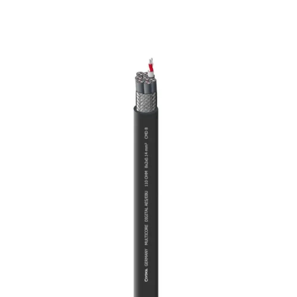 Cordial CMD 8 — профессиональный мультикорный кабель с восемью витой парами, разработанный для стабильной передачи цифровых сигналов DMX и AES/EBU (110 Ω). Кабель создан для использования в сценических системах освещения, студиях звукозаписи, концертных инсталляциях и прокатном оборудовании, где требуется надежная многоканальная передача сигнала без помех.