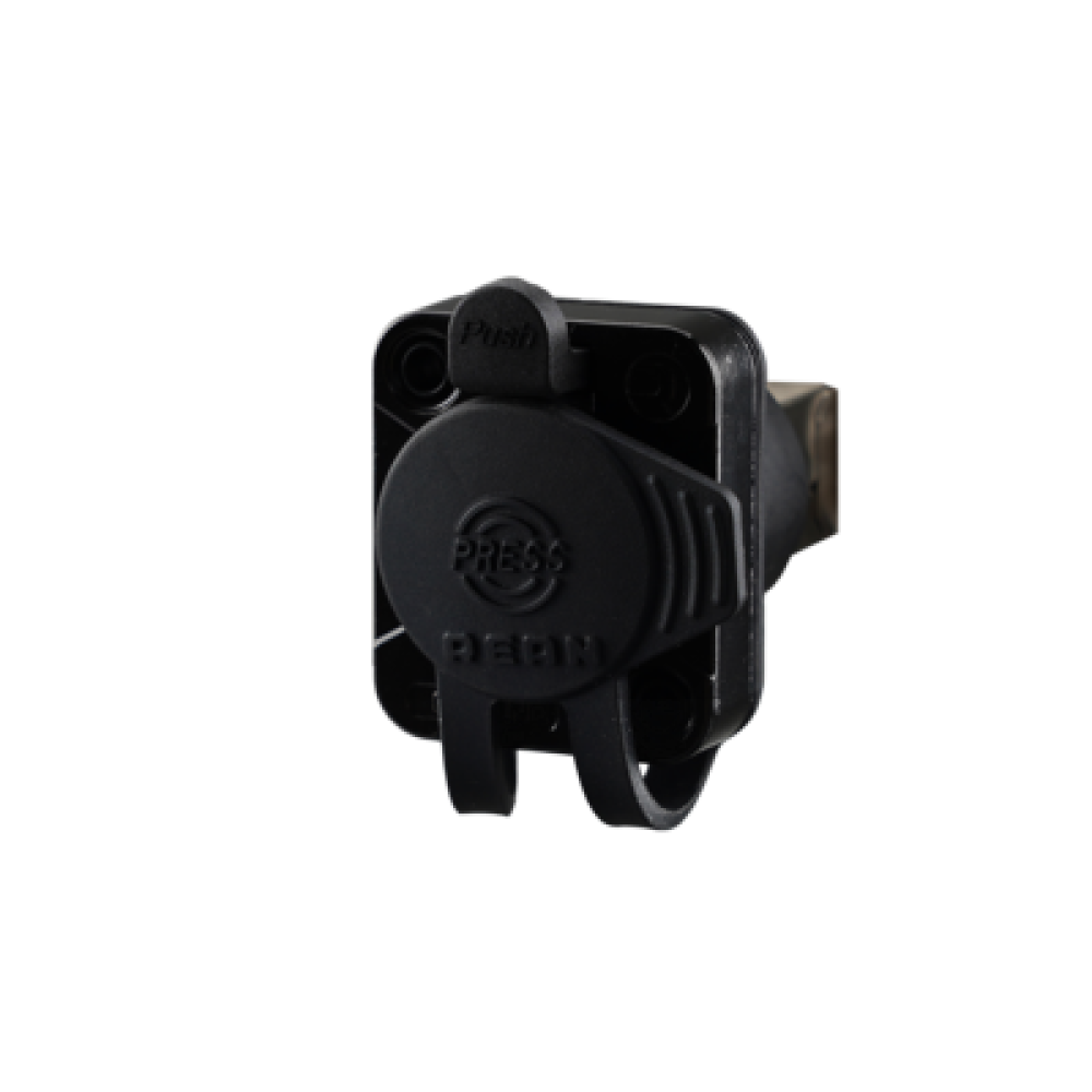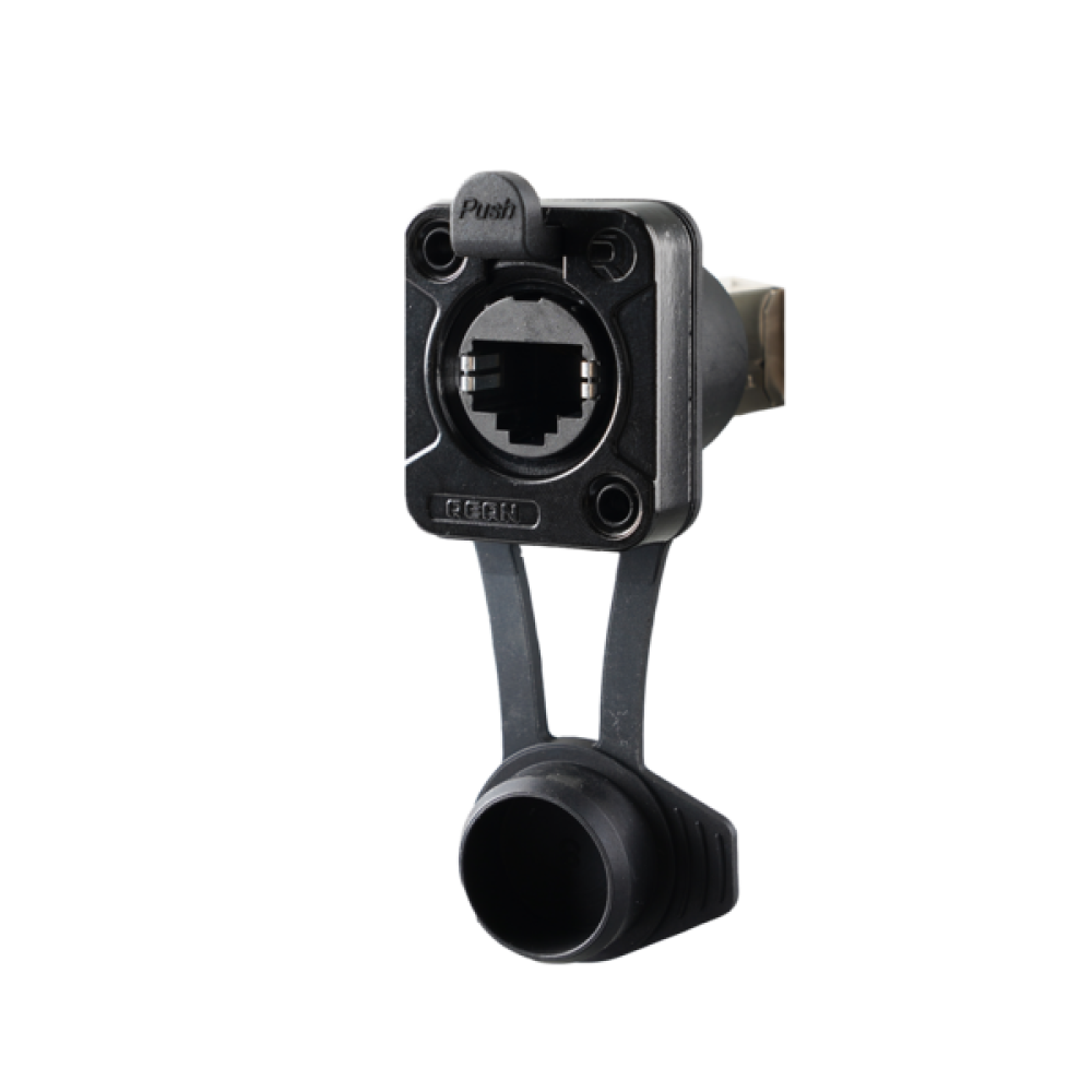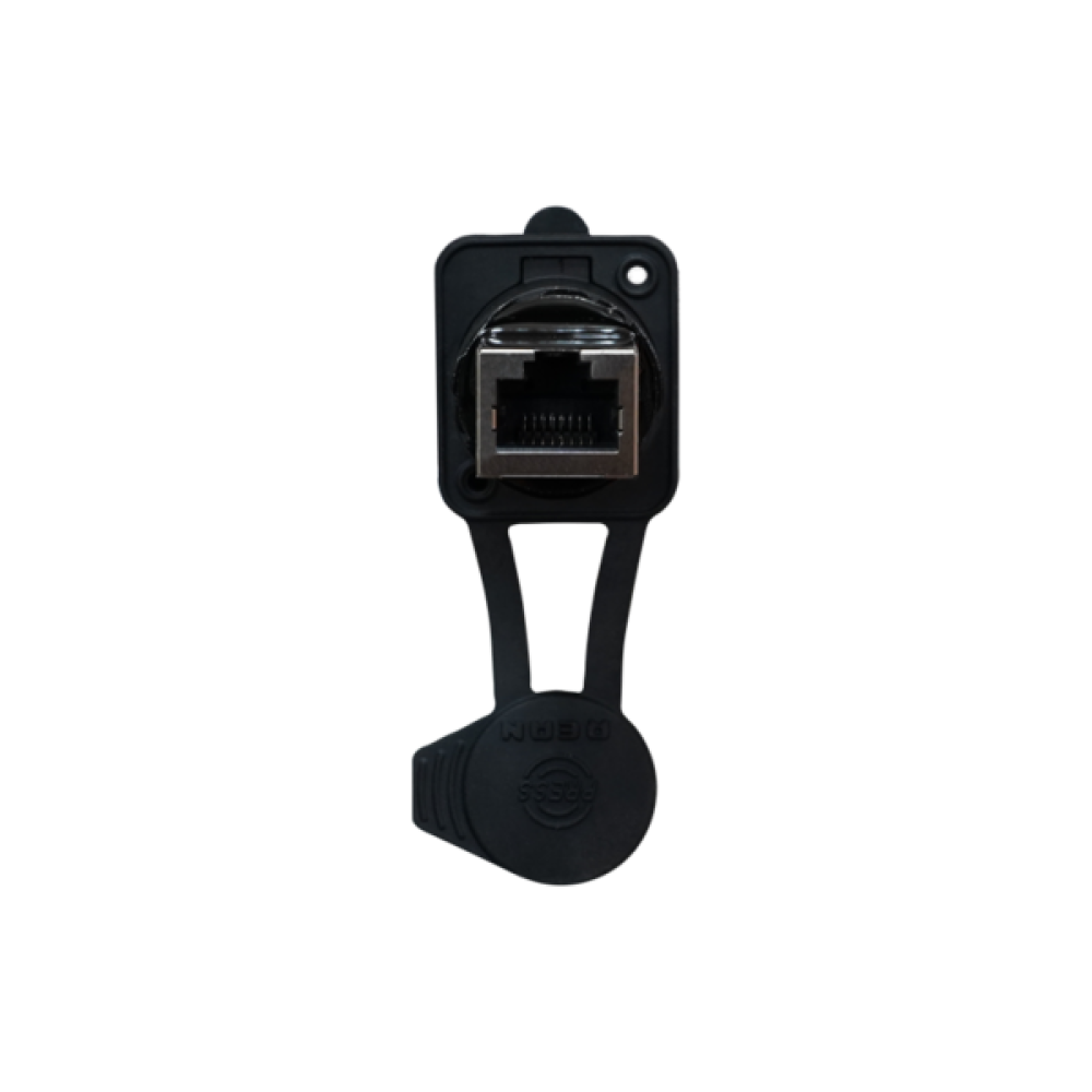 Панель Ethernet RJ45 (feedthrough, female) в металлическом корпусе D-формата с фиксатором latch lock. Обеспечивает герметичную защиту IP65 и воздухонепроницаемость при использовании с коннекторами серии REAN Z или при закрытой резиновой крышке. Подходит для сценического, инсталляционного и промышленного применения.