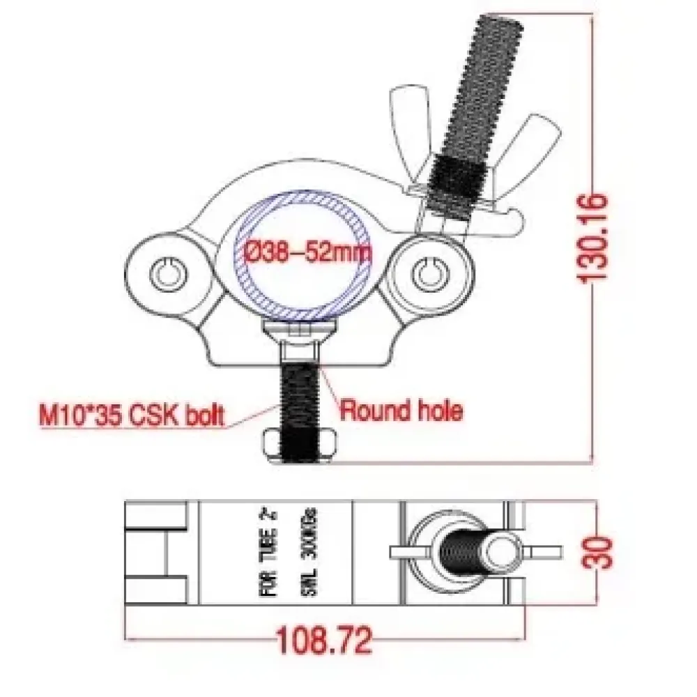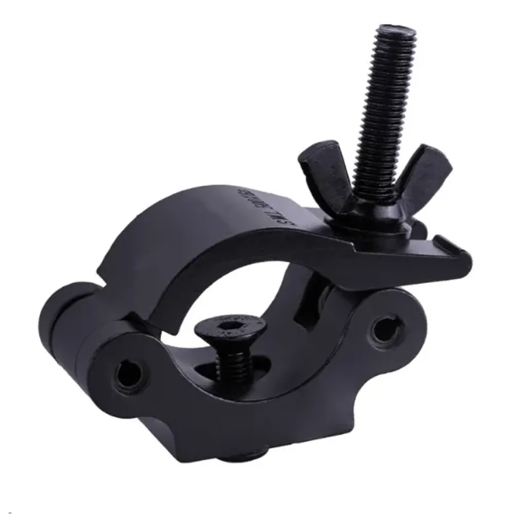 Струбцина - це професійний кріпильний затискач, створений для безпечного встановлення та фіксації світлового обладнання на тросах, фермах, стійках та інших конструкціях сцени. Виготовлена з якісного алюмінію, вона забезпечує надійне зчеплення та тривалий термін служби навіть за частої експлуатації.