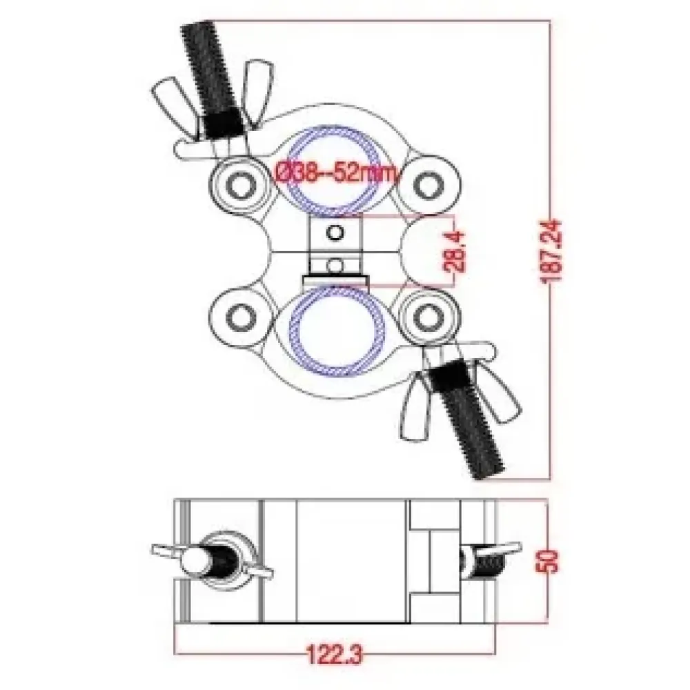 Струбцина - це професійний кріпильний затискач, створений для безпечного встановлення та фіксації світлового обладнання на тросах, фермах, стійках та інших конструкціях сцени. Виготовлена з якісного алюмінію, вона забезпечує надійне зчеплення та тривалий термін служби навіть за частої експлуатації.