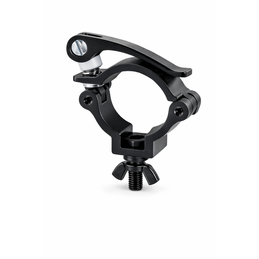 Струбцина - це професійний кріпильний затискач, створений для безпечного встановлення та фіксації світлового обладнання на тросах, фермах, стійках та інших конструкціях сцени. Виготовлена з якісного алюмінію, вона забезпечує надійне зчеплення та тривалий термін служби навіть за частої експлуатації.