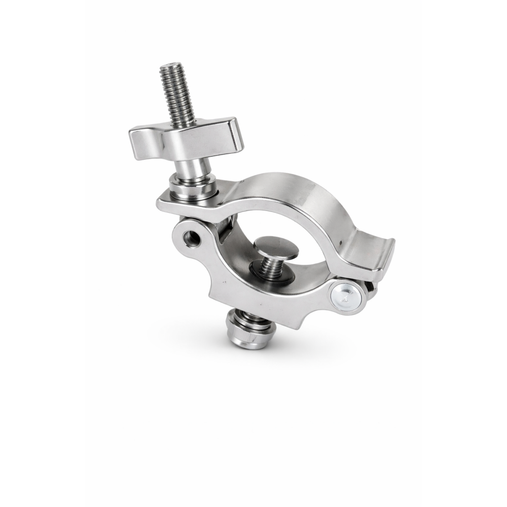 Струбцина - це професійний кріпильний затискач, створений для безпечного встановлення та фіксації світлового обладнання на тросах, фермах, стійках та інших конструкціях сцени. Виготовлена з якісного алюмінію, вона забезпечує надійне зчеплення та тривалий термін служби навіть за частої експлуатації.
