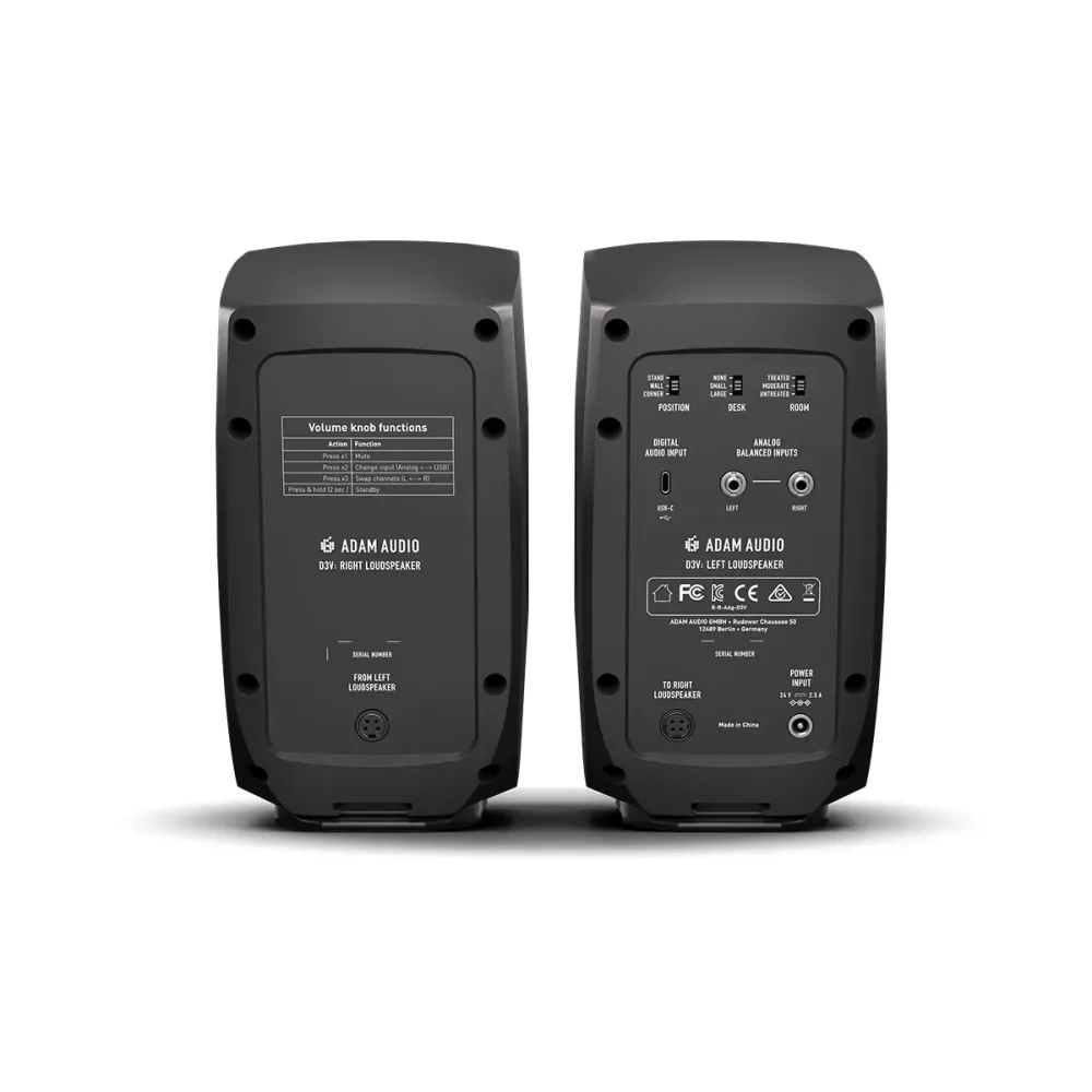 ADAM Audio D3V – це високоякісний студійний монітор, розроблений спеціально для авторів пісень, продюсерів та любителів музики. Він оснащений безліччю функцій та демонструє чудові аудіохарактеристики у компактному корпусі. D3V ідеально підходить для прямого підключення до комп'ютерів та мобільних пристроїв через USB-C, що робить його універсальним інструментом для сучасної студійної роботи.