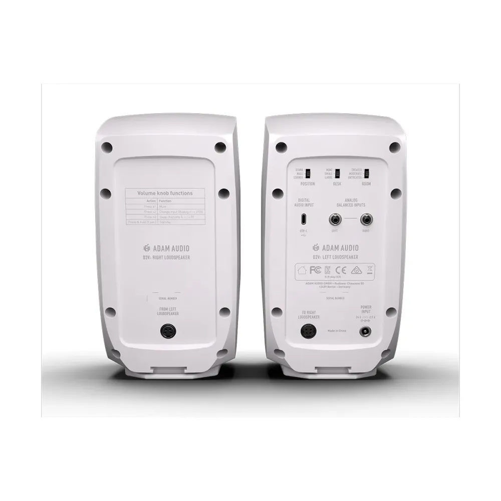 ADAM Audio D3V – це високоякісний студійний монітор, розроблений спеціально для авторів пісень, продюсерів та любителів музики. Він оснащений безліччю функцій та демонструє чудові аудіохарактеристики у компактному корпусі. D3V ідеально підходить для прямого підключення до комп'ютерів та мобільних пристроїв через USB-C, що робить його універсальним інструментом для сучасної студійної роботи