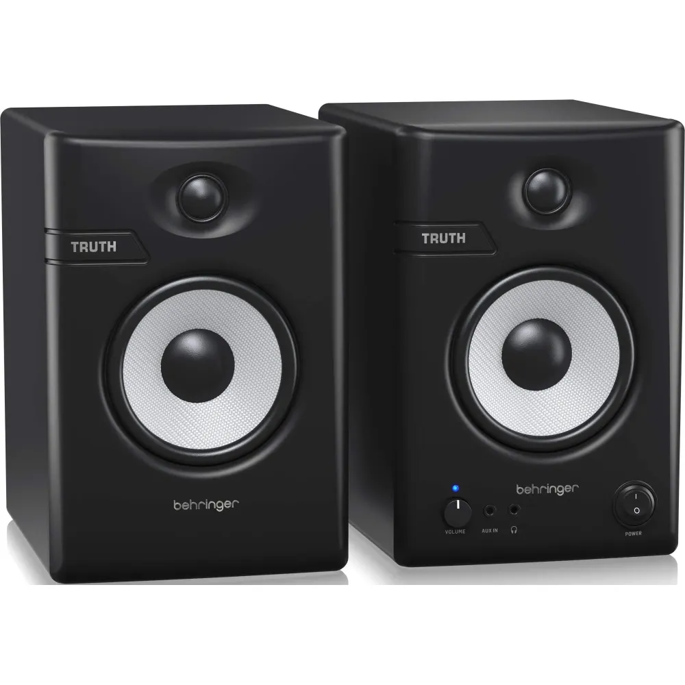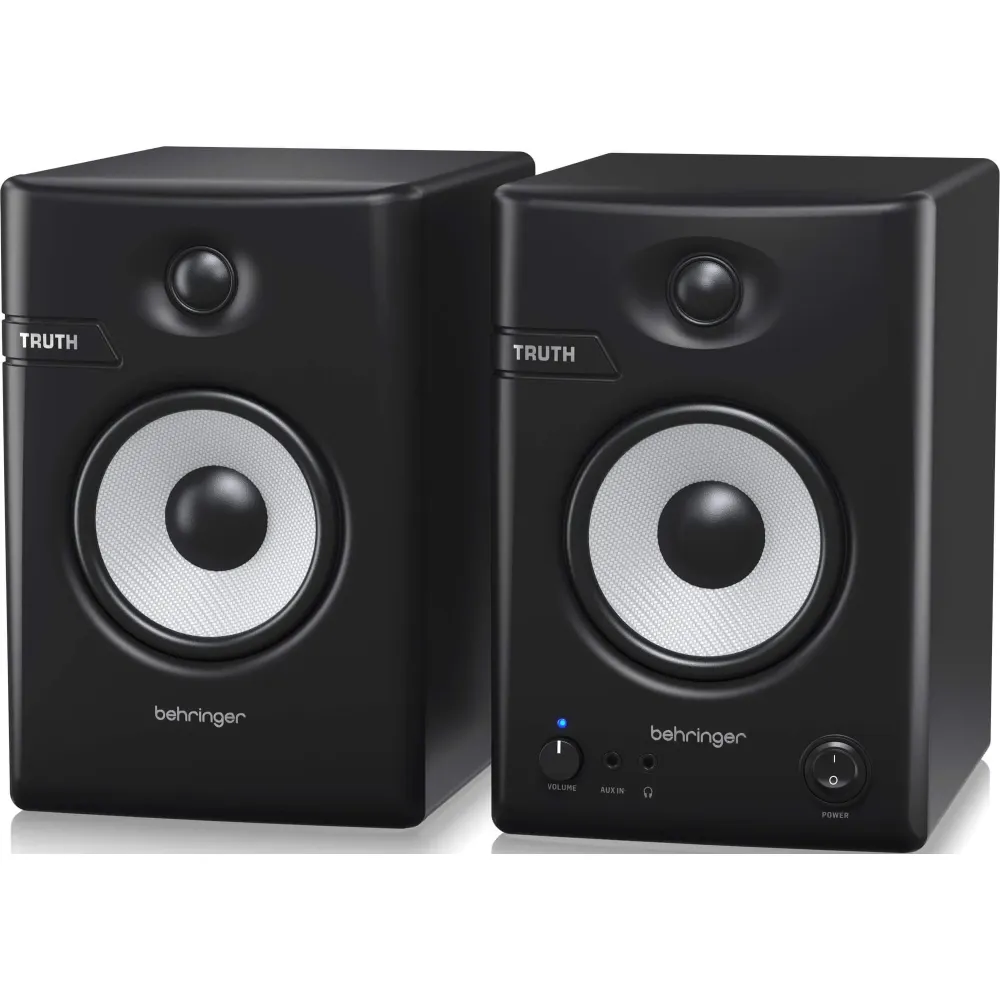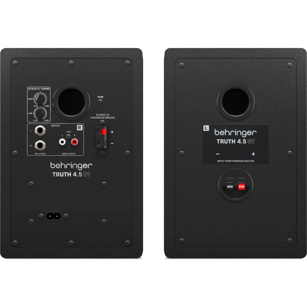 BEHRINGER TRUTH 4.5 BT – це 4,5-дюймові студійні монітори з удосконаленою хвилеводною технологією. Ультралінійні цифрові монітори TRUTH 4.5 BT потужністю 64 Вт та двосмуговою конфігурацією динаміків ідеальні для студії, домашніх записів, ігор та мультимедіа. Кожна деталь вашого міксу проявляється у всій своїй первозданній ясності, з тією динамікою та обсягом, які можуть бути досягнуті лише за допомогою студійної моніторної системи високої роздільної здатності.