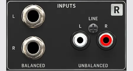 - Входи (задня панель): 2 x 6,3 мм балансні TRS (2,5 кОм), 2 x RCA небалансні (5 кОм)