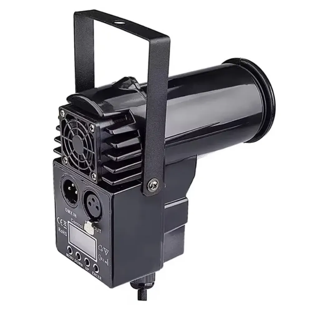 New Light M-SP10 LED PINSPOT LIGHT 10W RGBW - це професійний точковий прожектор, що створює яскраві, динамічні колірні акценти. Ідеально підходить для підсвічування дзеркальних куль та створення сфокусованого декоративного освітлення.