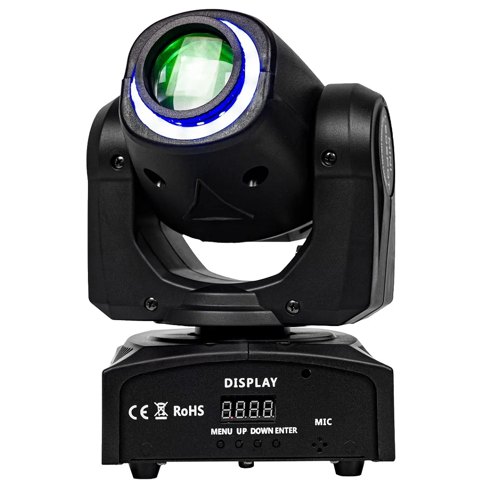 Free Color Mini Spot 30 Halo це недорога і якісна міні голова. В світлодіодним голові використовується діод типу COB потужність 30 Ватт (12 світлодіодів 5050SMD RGB) плюс додано кільце додаткових світлодіодів. Led голова має 7 гобо трафаретів і 7 кольорів. Управління здійснюється за dmx протоколу або в режимі музичної активації. Ручна настройка фокусування. Простий, інтуїтивно зрозумілий дисплей. Ефект стробування з можливістю вибору кольору. Висока швидкість обертання, компактні розміри і маленька споживана потужність (70 Вт) дозволяють застосовувати Mini Spot 30 Haloв невеликих клубах, караоке і мобільним музикантам.