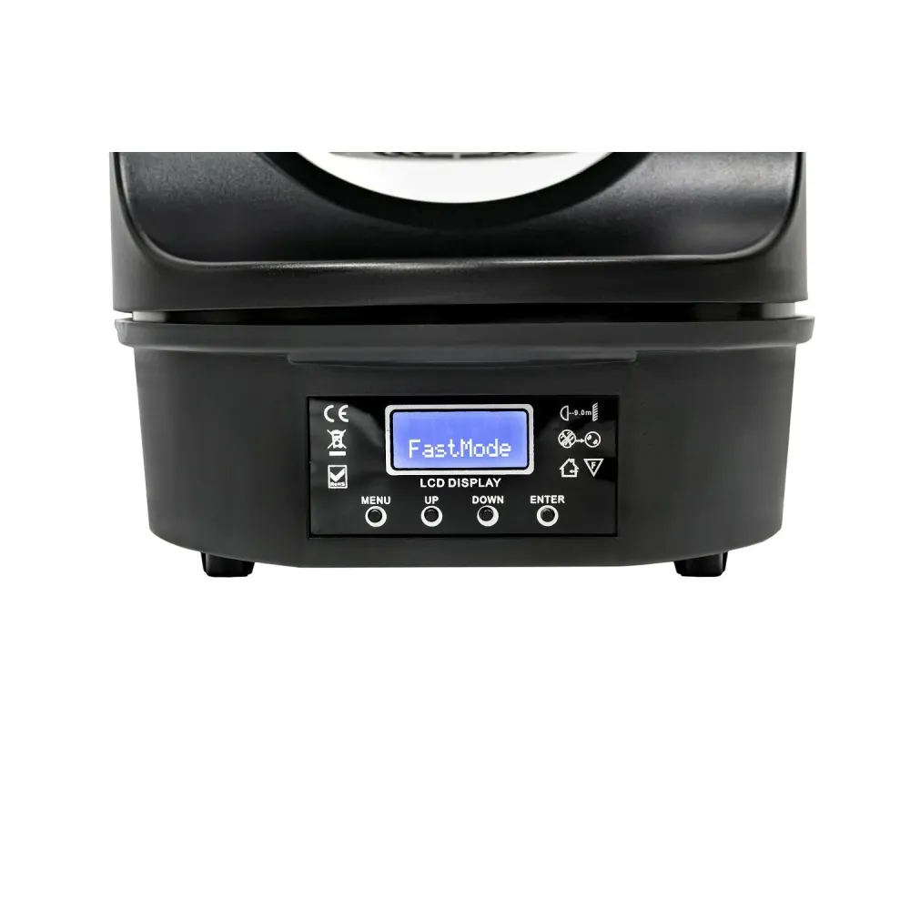 Прожектор підтримує кілька режимів керування — DMX512, автоматичний режим, Master/Slave та звукову активацію, що робить його універсальним для різних сценаріїв використання: від невеликих сцен до професійних світлових шоу. Компактні розміри та мала вага дозволяють легко транспортувати та встановлювати пристрій у мобільних системах.