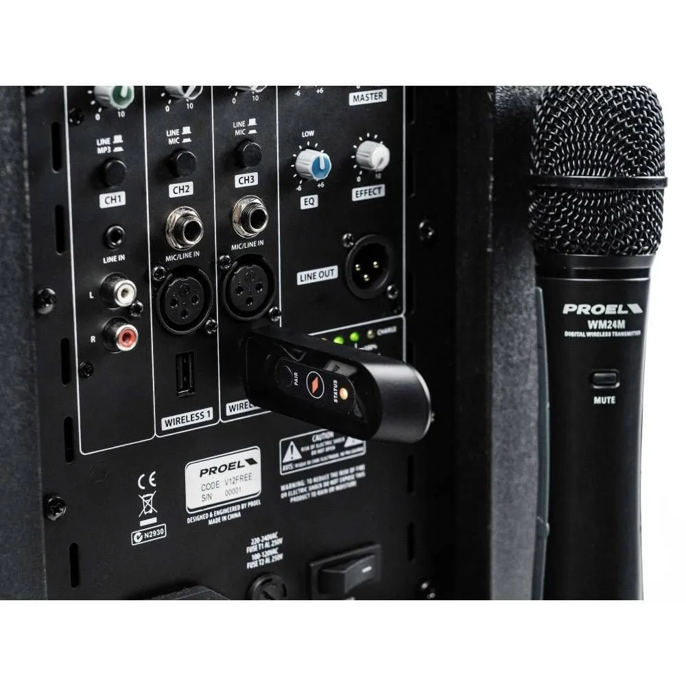 Приймач живиться через інтерфейс USB і має дворежимний аудіоінтерфейс для автоматичного підключення як до аналогових, так і до цифрових пристроїв. Він працює за принципом «plug-and-play» без необхідності встановлення драйверів і може бути підключений до будь-якого ПК/MAC для запису безпосередньо у вашу улюблену програму DAW. За допомогою відповідного адаптера USB типу A його також можна підключити до пристроїв IOS або Android для цифрових автономних додатків. Нарешті, його можна підключити до будь-якого пристрою PROEL з USB WIRELESS входом (таким як колонки V FREE і V WAVE) для миттєвого використання професійної мікрофонної системи без зайвих клопотів з кабелями.