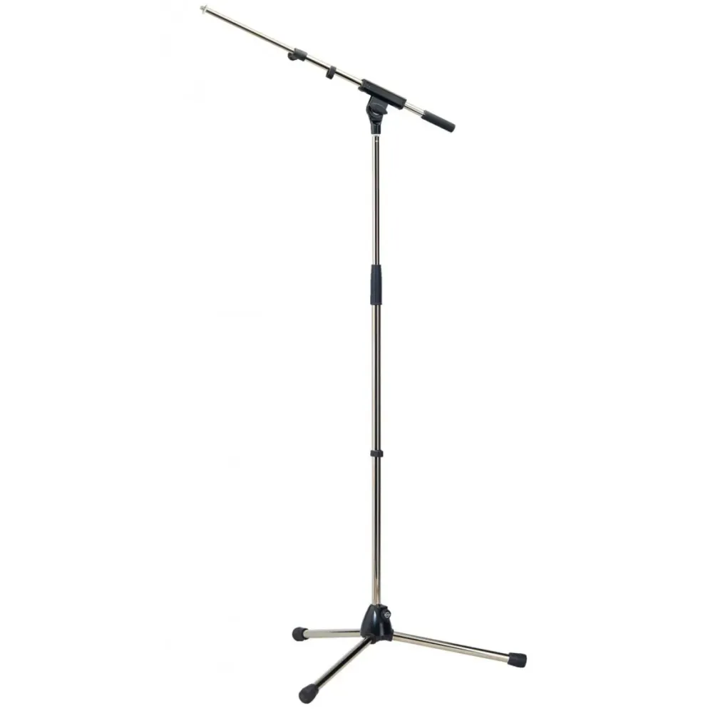 Стійка виготовлена з міцної сталі та має надійну конструкцію, розраховану на інтенсивне професійне використання. Телескопічна стріла дозволяє регулювати її довжину, що значно розширює можливості позиціонування мікрофона для вокалу, інструментів або мовлення.
