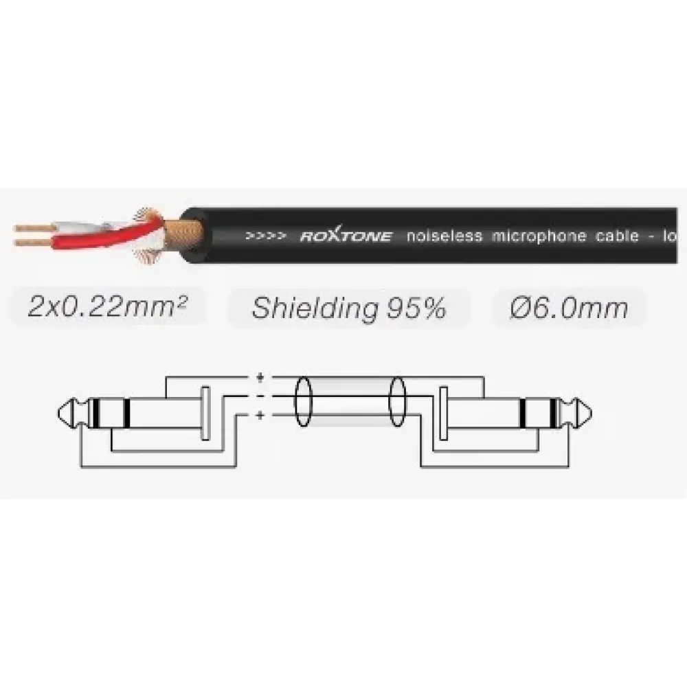 Roxtone SMXJ220L – професійний мікрофонний аудіокабель, призначений для передачі балансного сигналу між аудіопристроями з роз'ємами 6,3 мм TRS (stereo Jack). Кабель забезпечує стабільне з'єднання, мінімальний рівень шумів і високу схибленість, що робить його надійним рішенням для сцени, студії та інсталяцій.