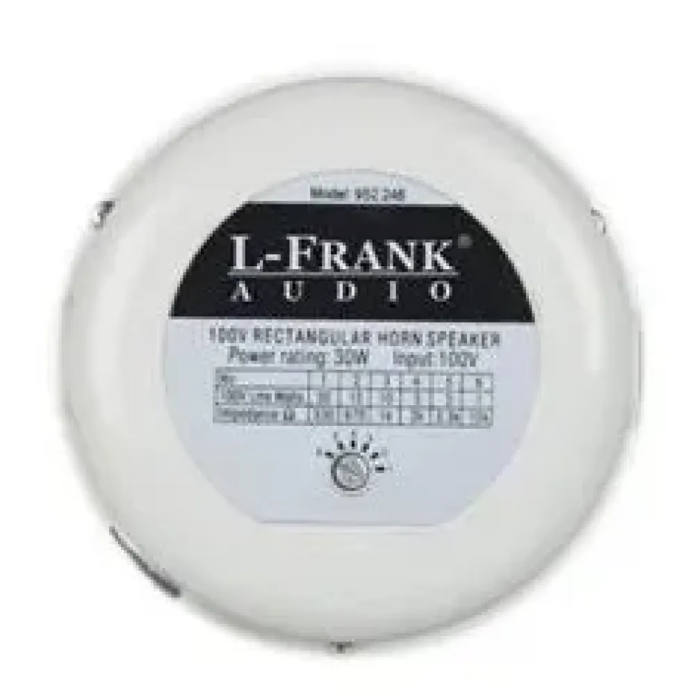 L-Frank Audio H709RT - рупорний гучномовець для 100-вольтових трансляційних систем, розрахований на експлуатацію в приміщеннях та на вулиці при помірних погодних впливах. Компактний формат, висока чутливість та регульована потужність роблять модель зручною для точкового та зонального оповіщення.