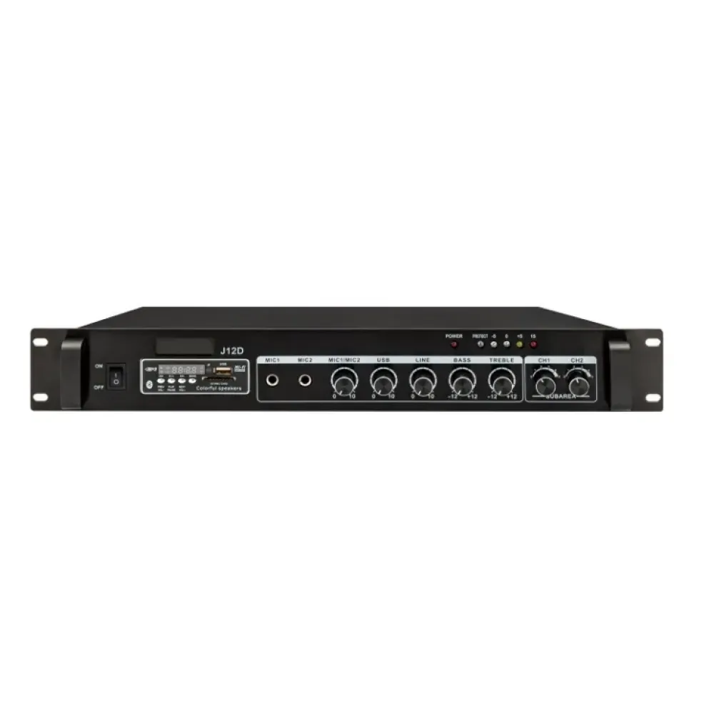 ProRecAudio J18D - професійний трансляційний підсилювач формату 1.5U, розроблений для побудови 100-вольтових систем озвучування та оповіщення з поділом на зони. Модель орієнтована на комерційні та громадські об'єкти, де важливі надійність, гнучкість підключення та зручне керування джерелами звуку.